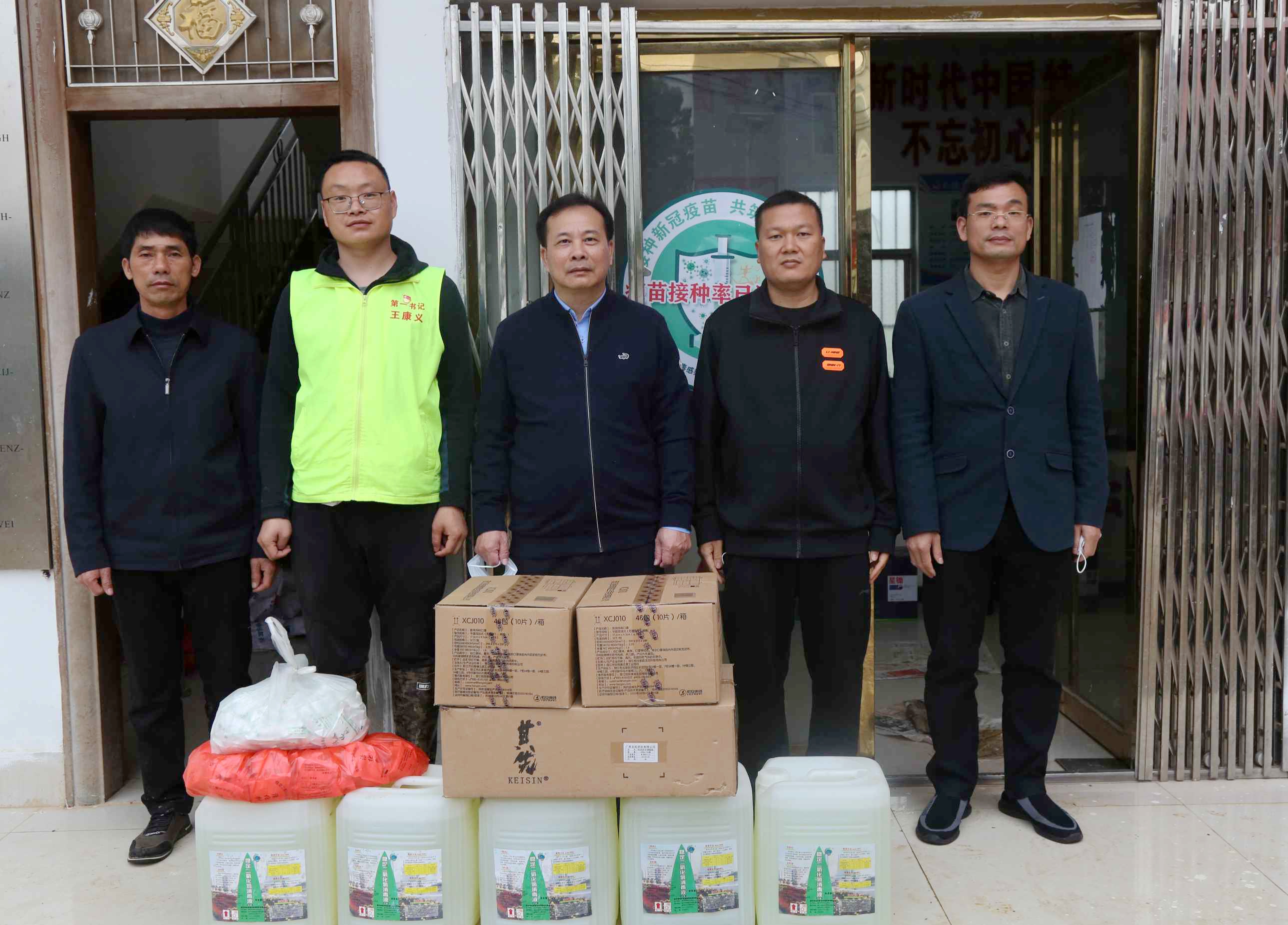 黄明瑞、李东升向玉峰村赠送一批防疫物资(陈诚/摄)